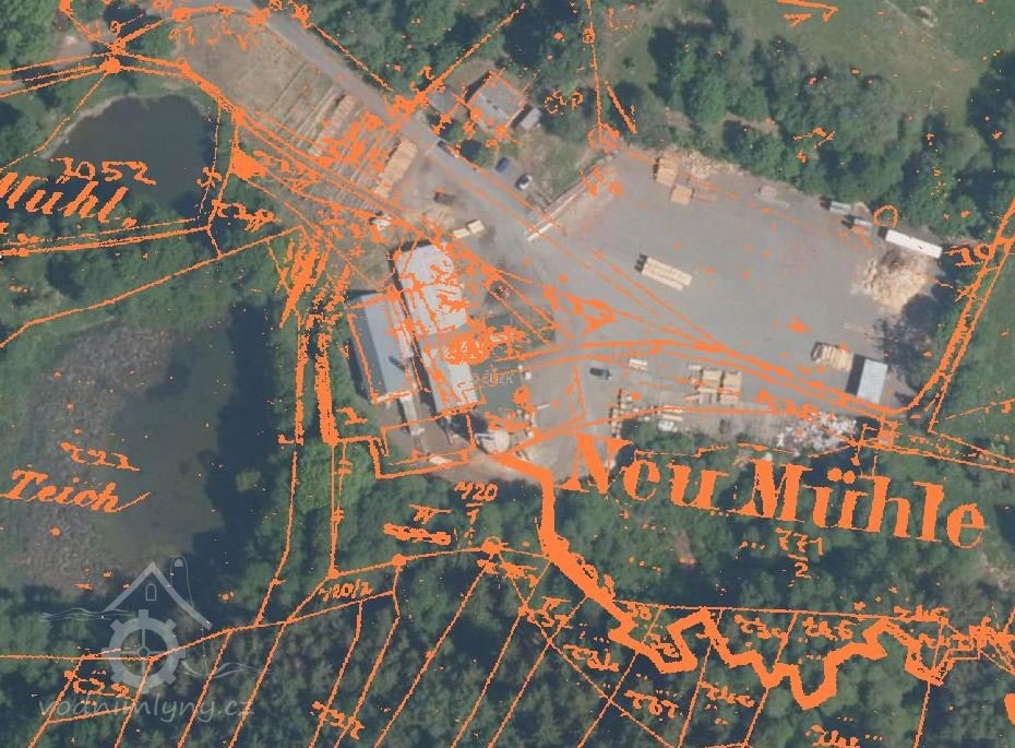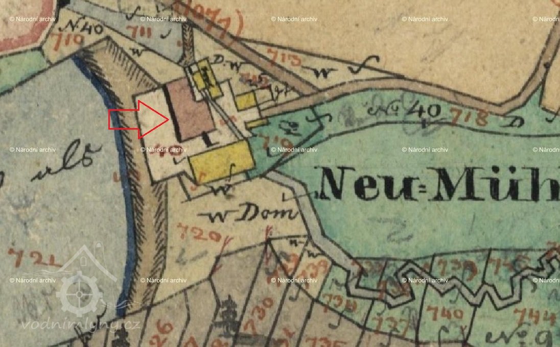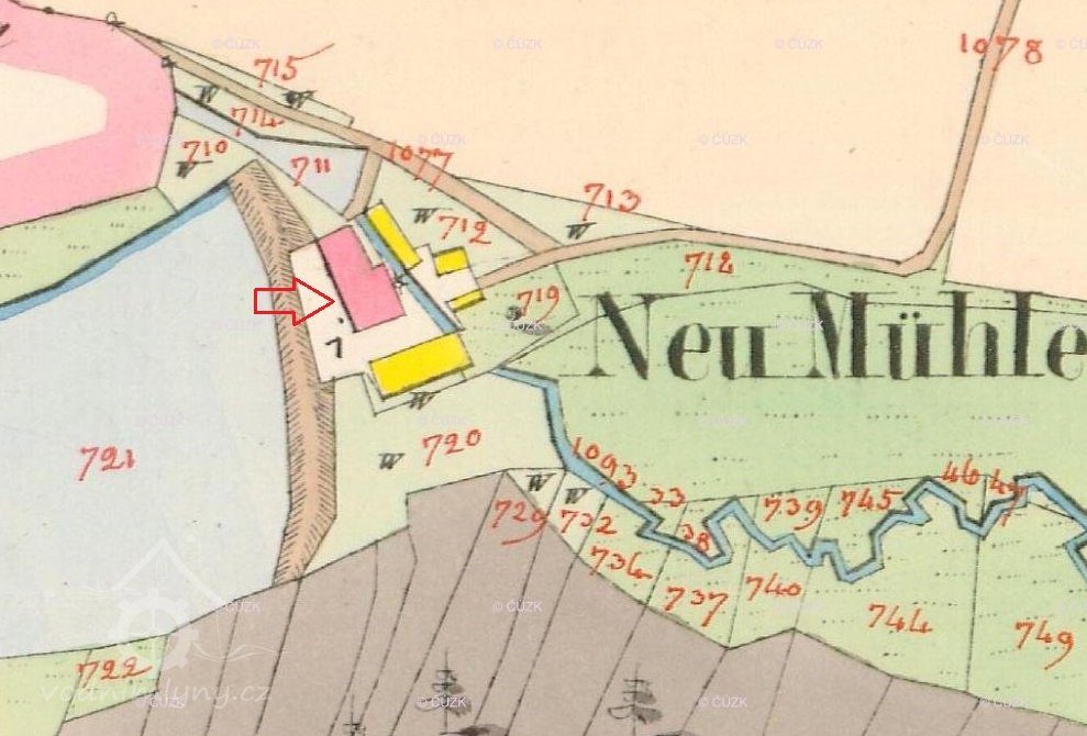 1838 – u mlýna byla pila, objekty mlýna a pily stály naproti sobě a byly napájeny vodou ze společné vodní nádržky nad mlýnem. Ve stabilní katastru je jako držitel mlýna s pilou k roku 1838 uváděn Mathias Schmutzer.
