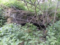 Opěrná zeď nad odtokovým kanálem či cestou ku mlýnu, 2020, © doxa, (Prvky na obrázku: odtokový kanál)