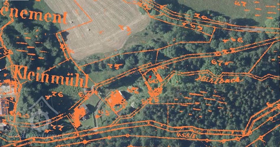 Letecká mapa a mapa pozemkového katastru, 2009 - 2018, © viz https://cirkevni-restituce.cuzk.cz