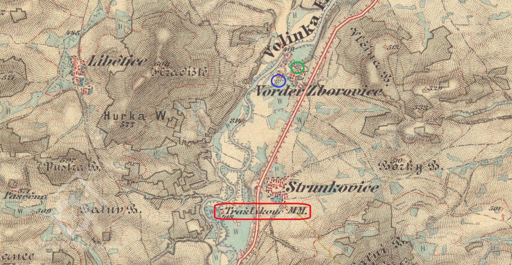 Větší mlýn na samotě pod Strunkovicemi, dnes slouží jako zemědělská farma.