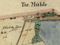 Tiský mlýn se nacházel poblíž Tiského dvora a byl majetkem vrchnosti. Rybník a okolní pozemky patřily také baronu Nádhernému, jenž vlastnil velkostatek a zámek v Moravci. Mlýn je zobrazen na II. vojenském mapování a na císařském povinném otisku z r. 1835.