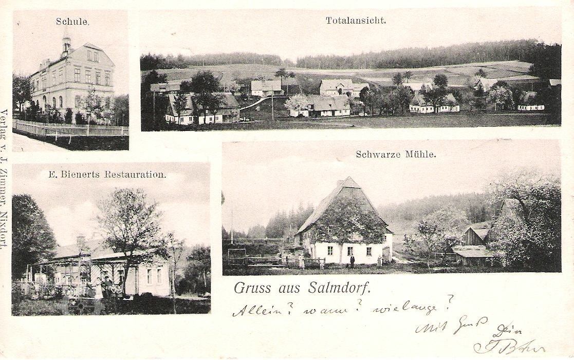 V Soupise poddaných velkostatku Lipová je na začátku roku 1771 v obci Salmov uváděn mlynář Jacob Grohmann (37 roků) s manželkou Marií Magdalenou (31) a dětmi Johannou Theresií (9), Rosalií (4), Eleonorou (2) a Johannem Jacobem (1). Do roku 1785 se manželům narodily ještě 6 dalších děti, a to syn Johann Franz a dcery Brigitta, Maria Wiktoria, Berta, Magdalena a Johanna.