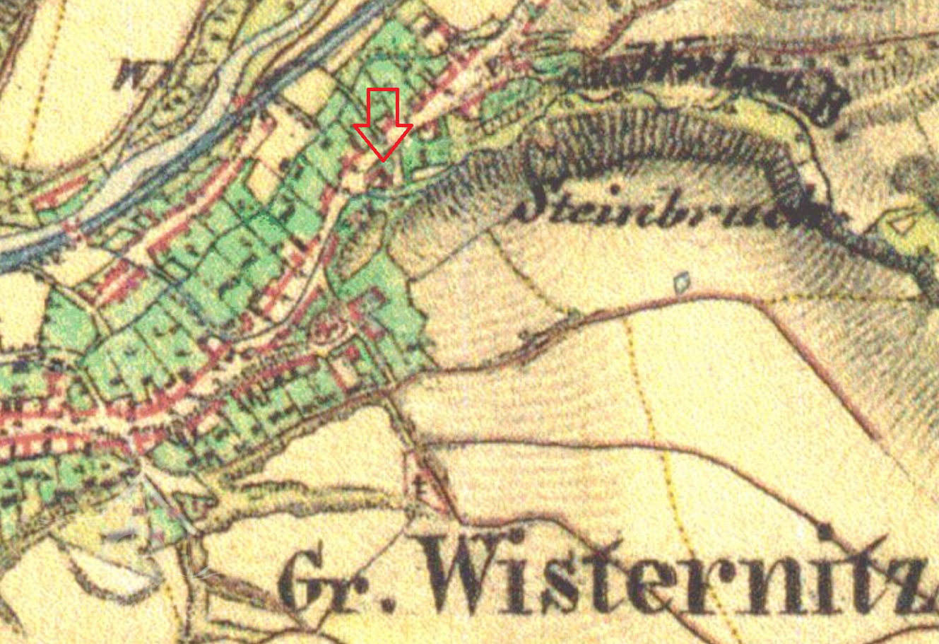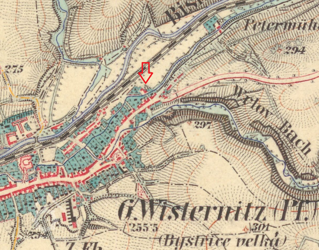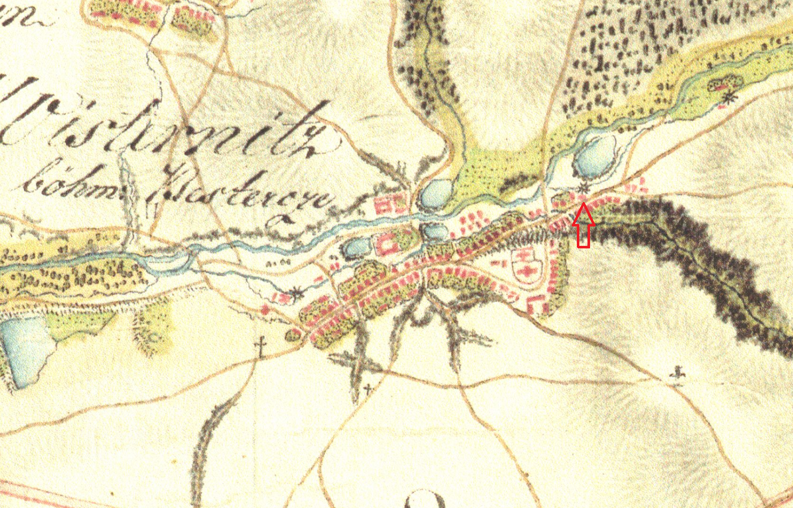 Mlýn dohledán na mapách I. vojenského mapování (JV)