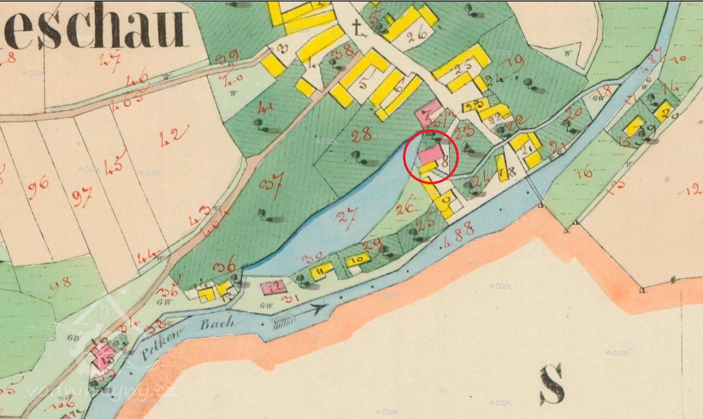 1858 pachtýř František Zelenka, syn Jana Zelenky, mlynáře z Řepic 27 s Barboriu roz. Trejbalovou ze Strakonic 100
