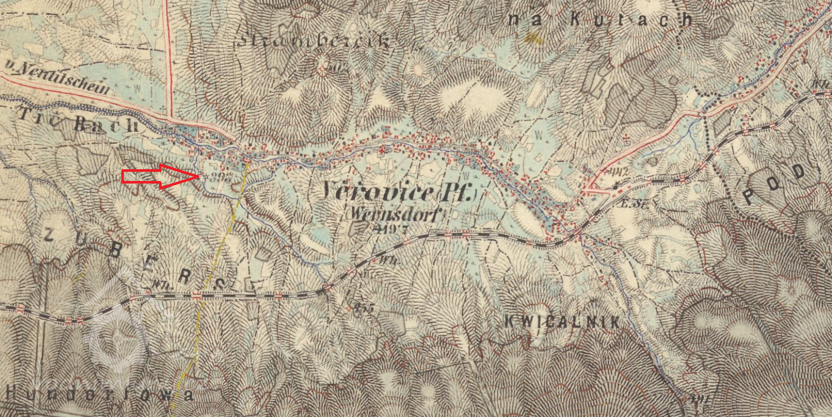 1,3 km západně od kostela Nanebevzetí P. Marie ve Veřovicích