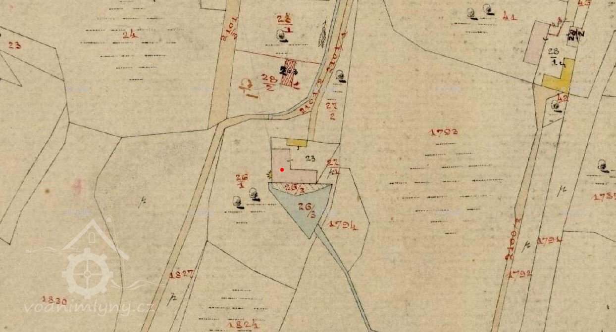 Popis1930: 1 kolo na svrchní vodu, hltnost 0,21 m3/s, spád 4,4 m, výkon 8 HP