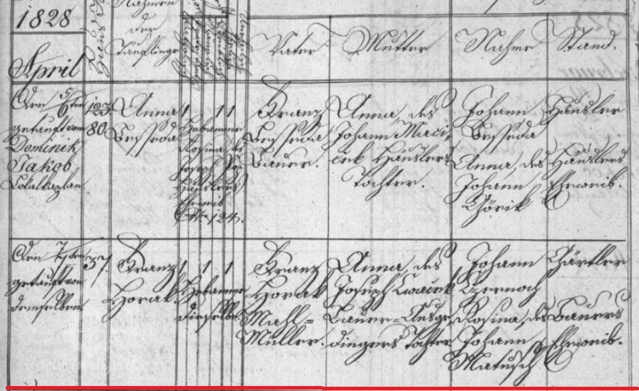 V roce 1828 mlýn vlastní Franz Horák, v tomto roce se jemu a manželce Anně narodil syn Franz.
