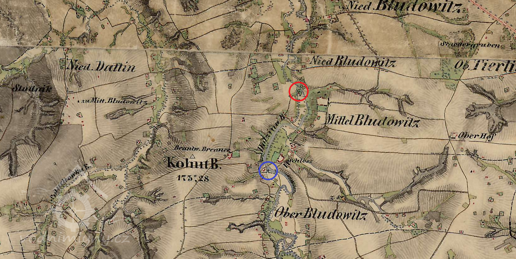 Doba založení mlýna pod bývalým zámkem v Prostředních Bludovicích není přesně známa. Zda-li tomu bylo již před založením zámku a dvora na návrší nad pravým břehem Lučiny Václavem Karvinským z Karviné v letech 1740 – 1772 nebo až po jeho založení nelze dnes věrohodně říci.