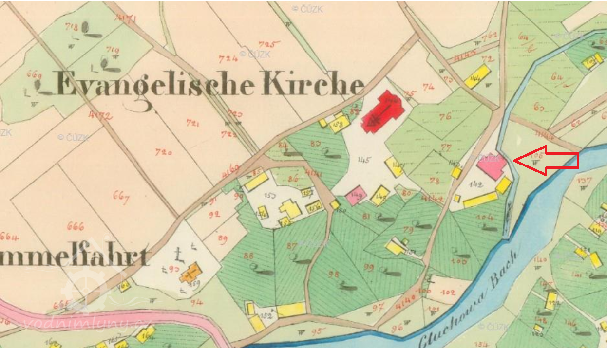 Severní, architektonicky cennější část bývalého mlýna na parcele č. 27 má číslo popisné 13 a je majetkem paní Beatrice Adamíkové z Oldřichovic. Jižní část s čp. 181