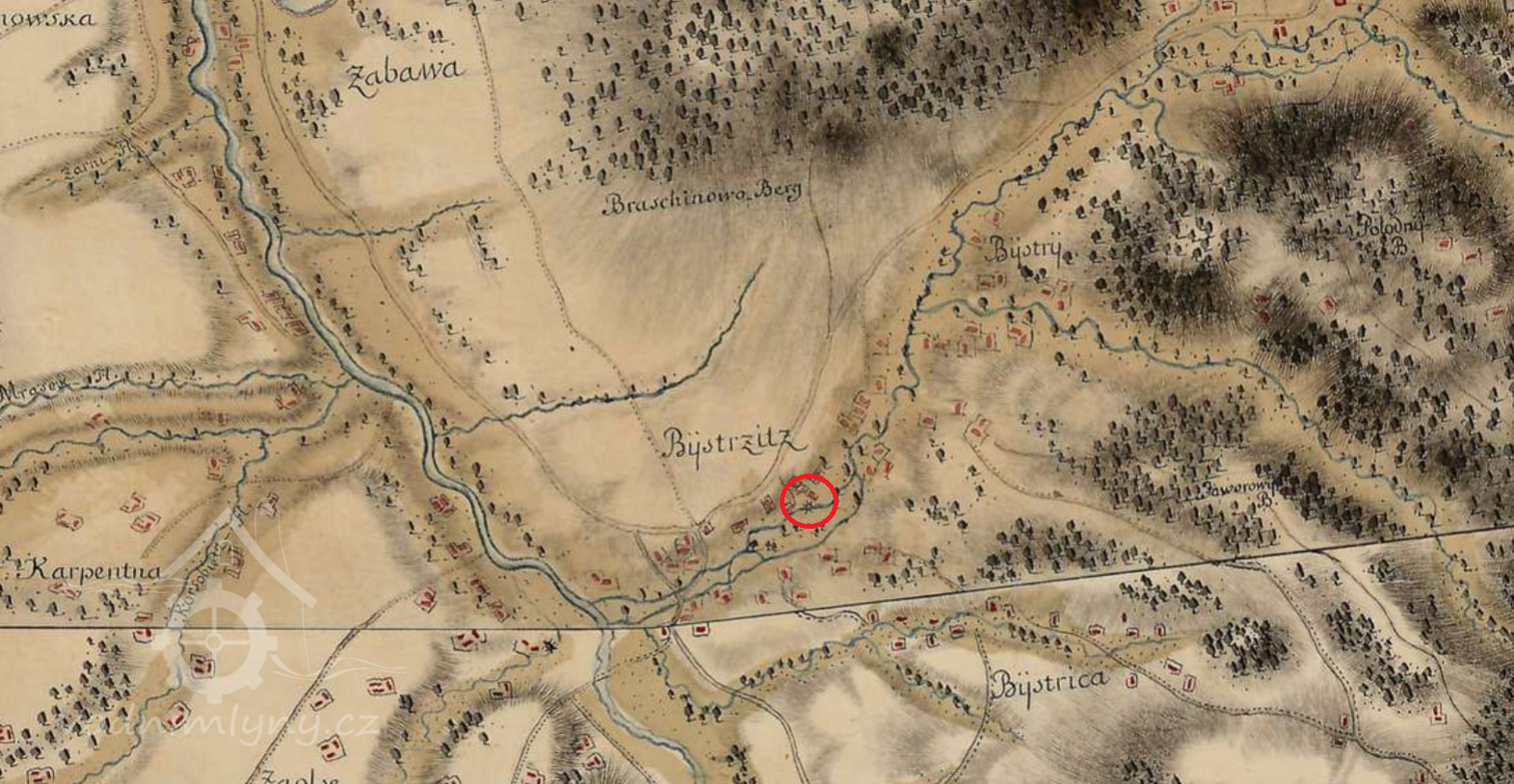 Ve hmotě zachovaný mlýn, dnes rodinný dvojdomek.