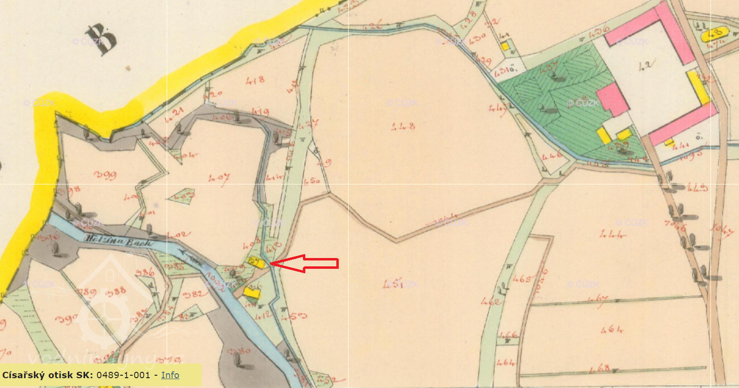 Mlýn založený patrně v 16. století, koncem 19. stol. ukončil provoz, mlýniště dnes zatopeno Žermanickou přehradou.