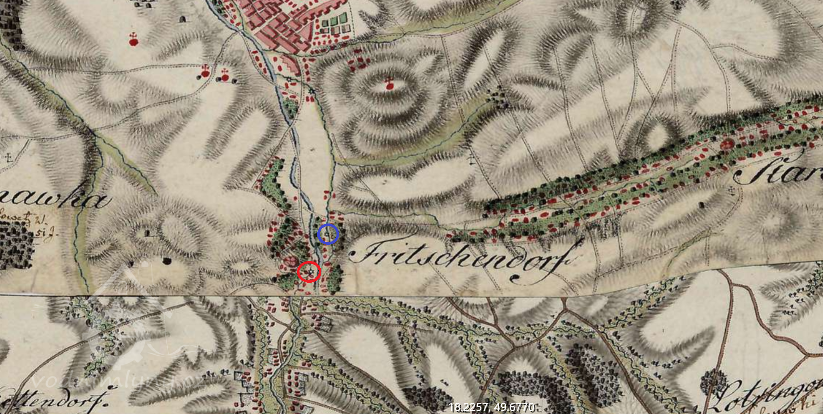500 m severně od kostela Nanebevzetí P.Marie ve Fryčovicích