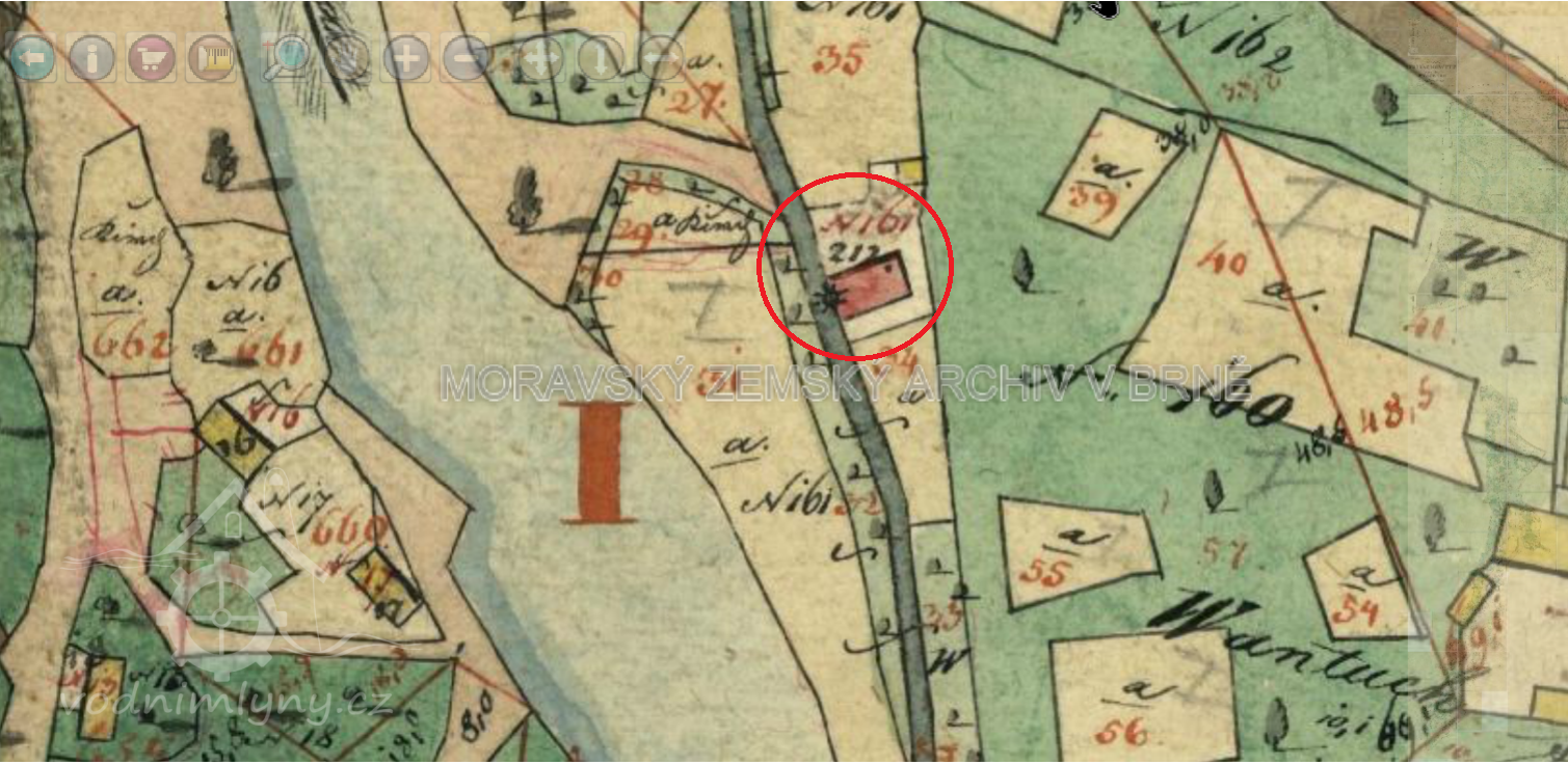 Mlýnské kolo se nacházelo na jihozápadním štítovém průčelí, přiléhající k vodní příkopě.