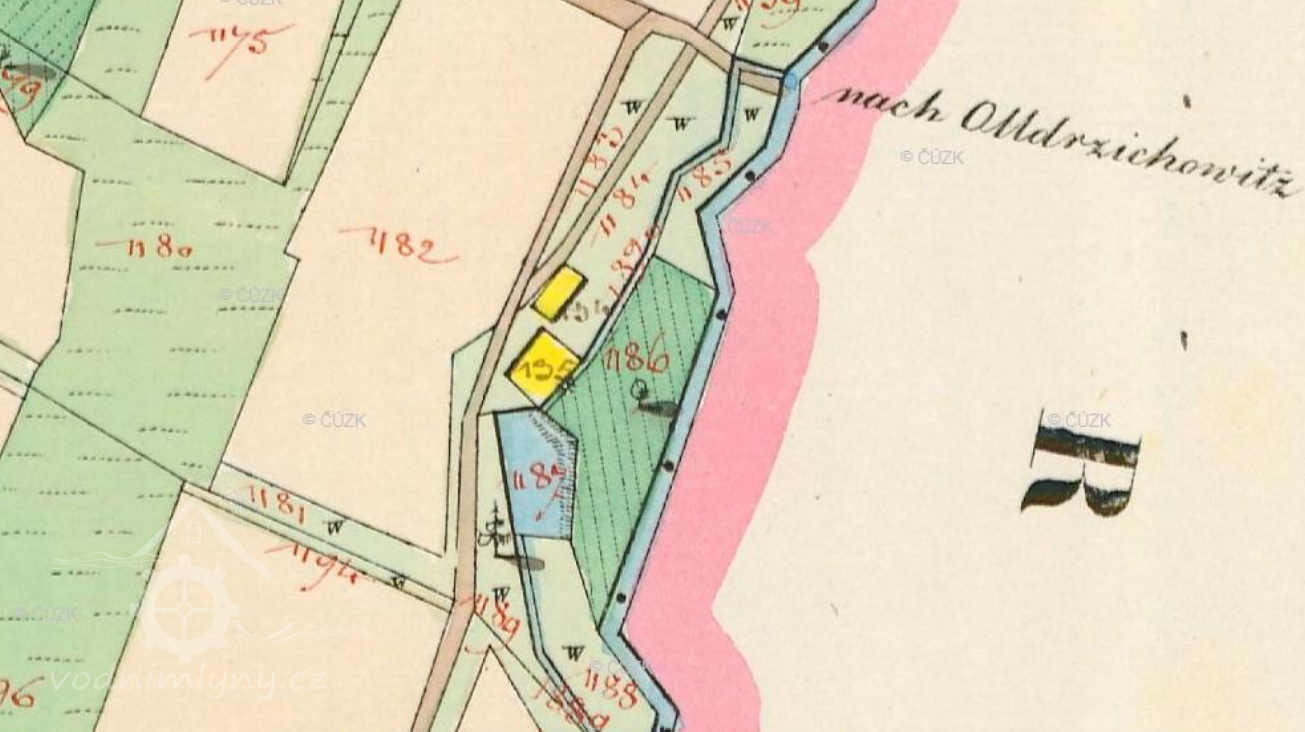 Původní rybníček je dnes dochován jako zahrada pč. 1187. Snad zachována i rýha náhonu.