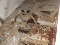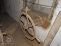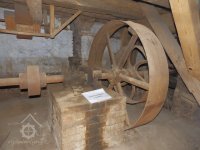 Transmise v přízemí, 2019, © doxa, (Prvky na obrázku: transmise, řemenice, převody, mlýnská hranice)