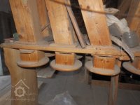 Transmise v přízemí, 2019, © doxa, (Prvky na obrázku: transmise, řemenice, převody)