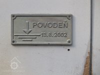 Turbínový domek s vyznačením povodňové značky, 2019, © doxa