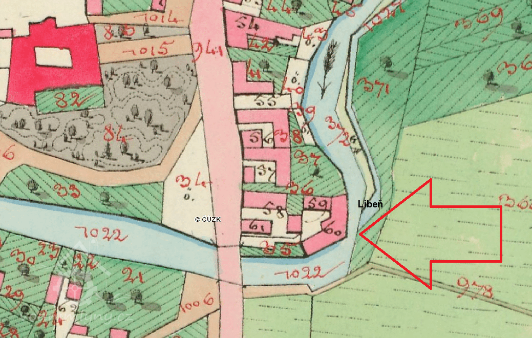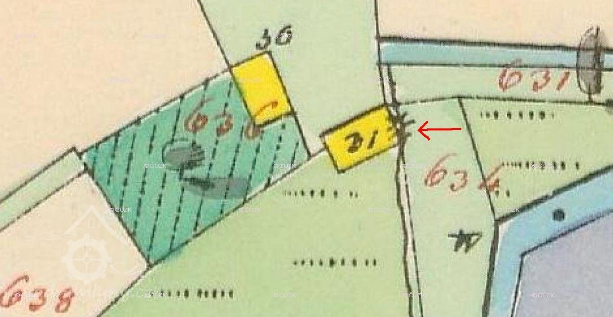Indikační skica, výřez, 1838, © viz archivnimapy.cuzk.cz