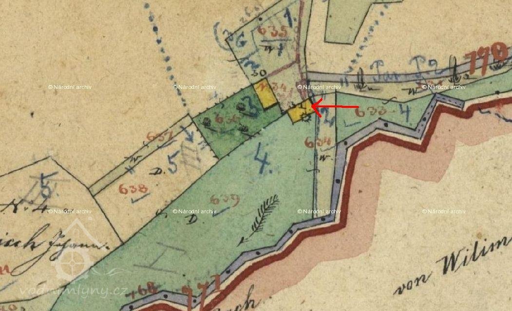 Císařský povinný otisk, výřez, 1838, © viz archivnimapy.cuzk.cz