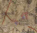 Mlýn pod hrází rybníka, provoz ukončil patrně již v po pol. 19. stol., zbořen s celou vesnicí v roce 1967 skrz těžbu hnědého uhlí.