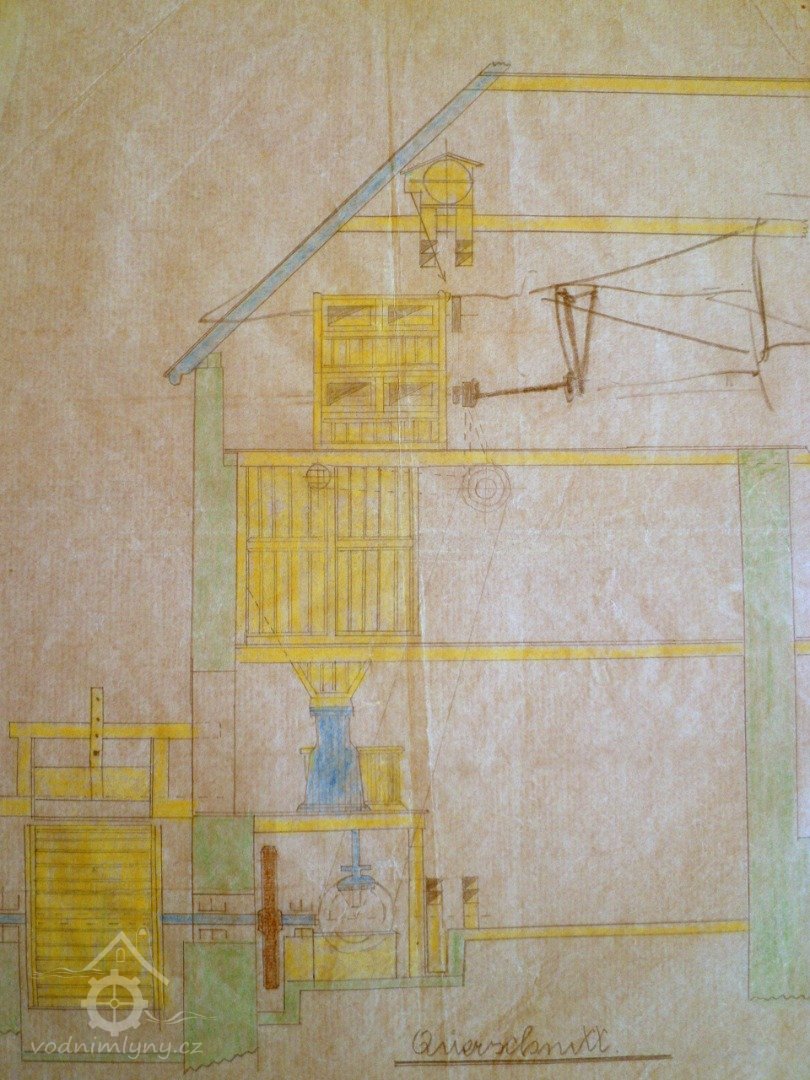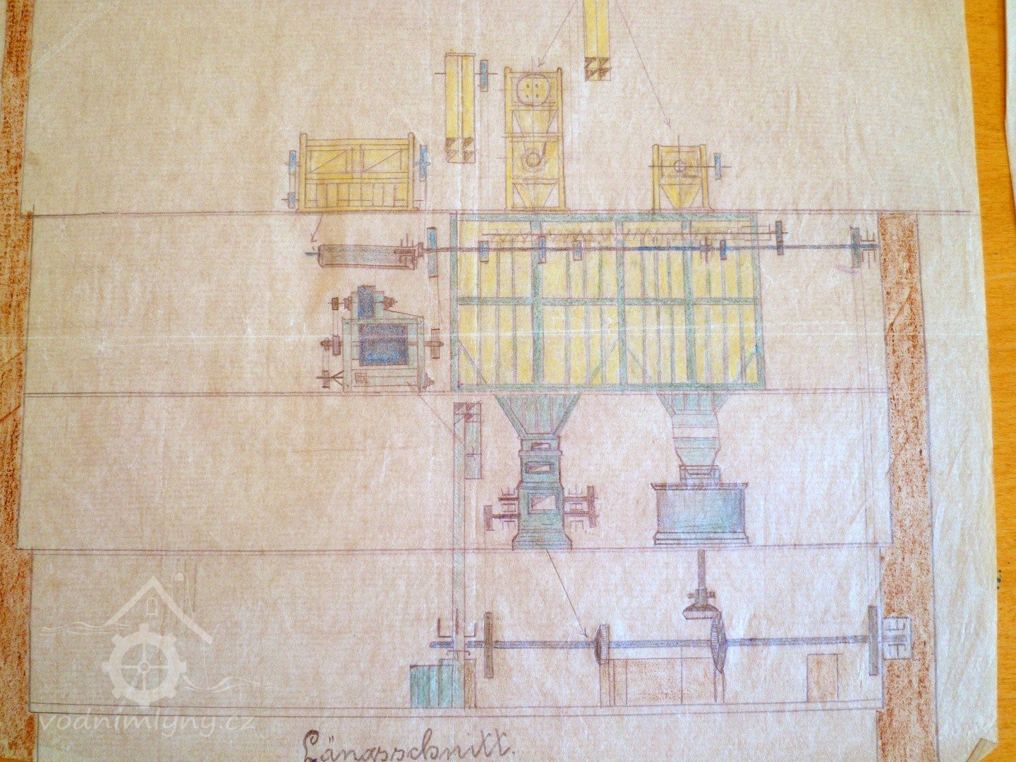 Náhon na mlýn je 100 sáhů dlouhý a začíná u výtoku z koželužny a vede vodu 120 l/s na jedno kolo na horní vodu 2.2 m vysoké o výkonu 4,3 HP, které v roce 1912 pohánělo mlecí zařízení, jedno francouzské, jedno německé složení a jedno špicovací složení na kroupy. V r 1922 probíhá modernizace, instaluje se mlýnská stolice, loupačka, výtahy a čištění obilí a na firemním razítku je ,,Kunstmúhle a Bäckerei ,,umělecký mlýn a pekárna" . 23.7 .1927 proběhla kolaudace pohonu, ale není mi známo zda tam došlo k výměně za turbínu.V roce 1930 se mění dřevěný náhon za betonový a uvažuje se o turbíně , korespondenci vede Paul Schmidt.