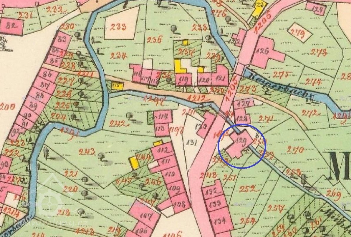 Městský mlýn Stadtmühle, připomínán v r. 1684,v r. 1697 se připomíná nájemce Kryštof Ambler, 1759 Ignác Pusch,1906 Adolf Winkler, 1930 Wenzel Hampel, 1945-48 Václav Linhart.