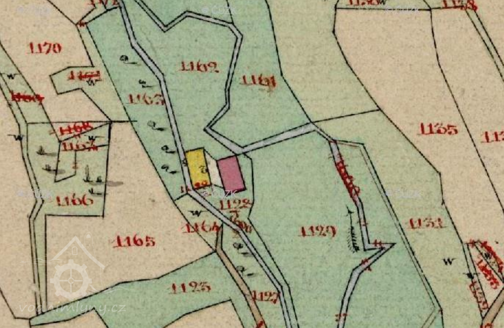 Popis1930: 1 kolo na svrchní vodu, hltnost 0,12 m3/s, spád 3,6 m, výkon 3,8 HP