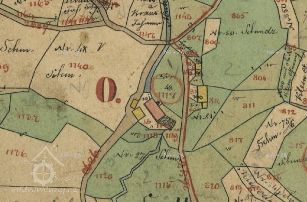 Nejstarším z pěti mlýnů, které stály v obci Tachovská Huť byl Finkenmühle s čp. 48. Zprávy o existenci mlýna jsou z roku 1838. Mlýn stál po pravé straně okresní cesty z Mariánských Lázní do Mähringu, v místech, kde cesta prudce zahýbala doleva, za mostkem přes potok Tichá. Mlýn stál na pravém břehu potoka. V okolí stály ještě další čtyři domy, pro všechny sloužila pitná voda ze studny u mlýna.