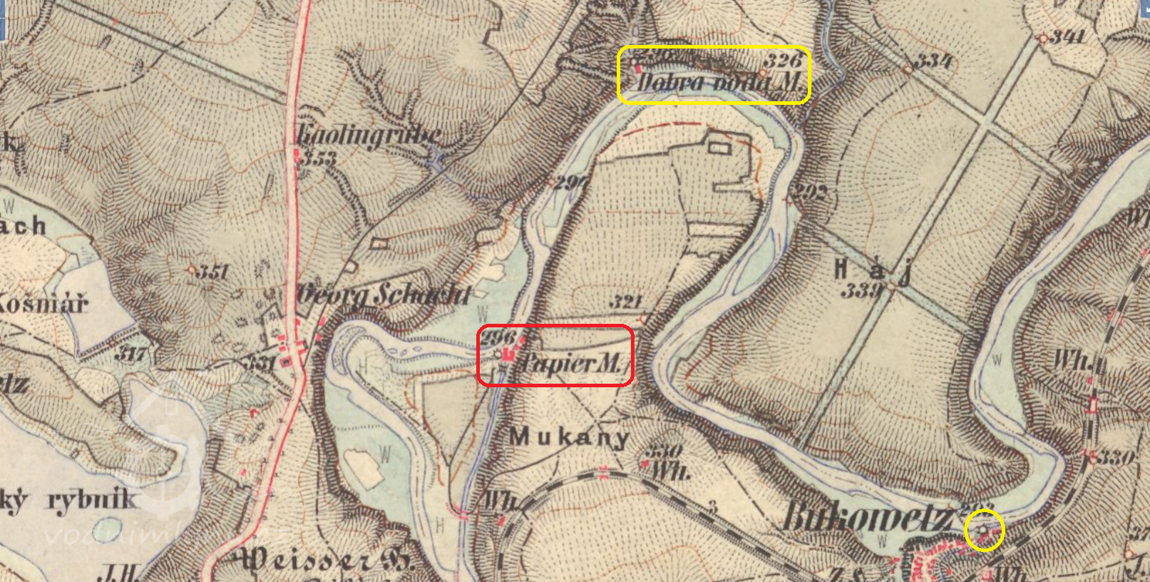 V roce 1869 zakoupili bratři Carl a Wilhelm Weissovi, v té době již majitelé továrny na barevné papíry v Golčově dvoře v Praze Josefově (založené v roce 1818), tzv. Slavíkův mlýn čp. 29 v Bukovci, postavený po roce 1863 na pravém břehu Berounky. Po adaptaci se v přízemí nacházel jediný papírenský stroj o šíři 100?cm, v patře byla umístěna třídírna papíru, holandry a řezačky. Současně byla postavena brusírna, pohon zajišťovaly čtyři vodní turbíny (42 HP) a dva parní stroje (8 HP). Karel Weiss, který se ujal řízení firmy C. & W. Weiss po smrti Carla a Wilhelma Weisse v letech 1879–1880, provoz rozšířil a modernizoval. V letech 1879–1882 byly podle projektu pražského stavitele Františka Liebla přistavěny nová brusírna, čistírna vody, klihovna a dělnický dům. Po výstavbě nové přízemní budovy pro druhý papírenský stroj v letech 1887–1888 a zprovoznění třetího stroje produkce do roku 1896 stoupla na 2 200 tun ročně. Nevýhodná poloha továrny mimo hlavní komunikace byla částečně vyvážena v roce 1895 vybudováním vlečky z hlavní trati Praha–Plzeň, protažené v roce 1925 až k nové brusírně. Po smrti Karla Weisse byla jeho syny Karlem Weissem (†1942) a Vilémem Weissem (†1934) firma přeměněna na veřejnou obchodní společnost. V letech 1907–1909 zařídila novou kotelnu s komínem (strženým kolem roku 1980) a parní strojovnu 60 HP. V letech 1911–1912 byla rekonstruována a rozšířena stávající budova papírenského stroje, nainstalován brus s parním pohonem o výkonu 300 HP a postavena nová třídírna, do níž byly ze staré budovy přemístěny kalandry, převíječky, řezačky a linkovací stroj. Rekonstrukce v letech 1932–1933 proběhly podle projektu plzeňského podnikatelství staveb Müller & Kapsa, strojovna byla upravena stavitelem Otakarem Prokopem v roce 1938. Čistírnu vody roku 1937 nahradila nová filtrační a čerpací stanice podle plánů plzeňského architekta Františka Paška. Znárodněná firma C. & W. Weiss Bukovec, včetně pobočného provozu Továrny na dřevovinu, lepenky a elektrochemické výrobky Gustavsthal v Hamrech, který získala v roce 1939, byla roku 1947 začleněna do n. p. Západočeské papírny. V současnosti tovární objekty papírny využívají firmy zabývající se tepelnou technikou a konstrukcí strojů. Na pravém břehu Berounky, asi kilometr po proudu, vystavěl roku 1913 Matěj Šimandl (1859–1914) třípatrový válcový mlýn s elektrárnou, poháněný Francisovou turbínou 108 HP (ulice Nad Mlýnem čp. 14 49°46'21.98"N, 13°26'38.09"E). Od třicátých let se zde vyráběly technické plyny, po roce 1963 n. p. Technoplyn produkci zastavil, mlýn zůstal bez využití a v letech 2011–2013 byl postupně zbořen.