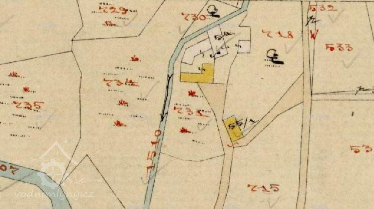 Popis1930: 1 kolo na svrchní vodu, hltnost 0,05 m3/s, spád 6 m, výkon 2,5 HP