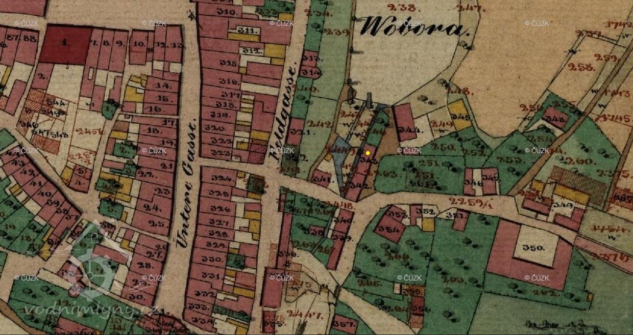 Starý mlýn přestavěný do té míry, že z původní budovy se zachovaly nejvýše základy. V budově již od roku 1915 sídlí rybářský spolek. Původně přízemní budova zanikla někdy po roce 1975.