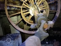 výjimečně zhotovené byly i kovové řemenice upevněné ke hřídeli kovovými pruty kruhovcých profilů