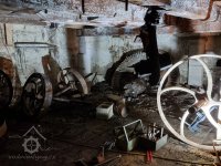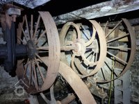 Dochována pouze spodní hlavní transmise v podkolí, transmisní předloha s pastorkem a řemenicí z palečního převodu, transmisní předloha k dynamu, dynamo a unikátní vzácné paleční kolo s tzv. přesazenými rameny.