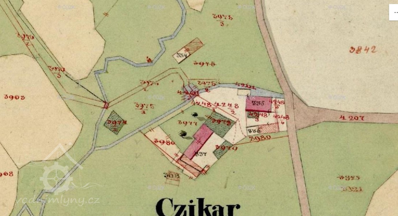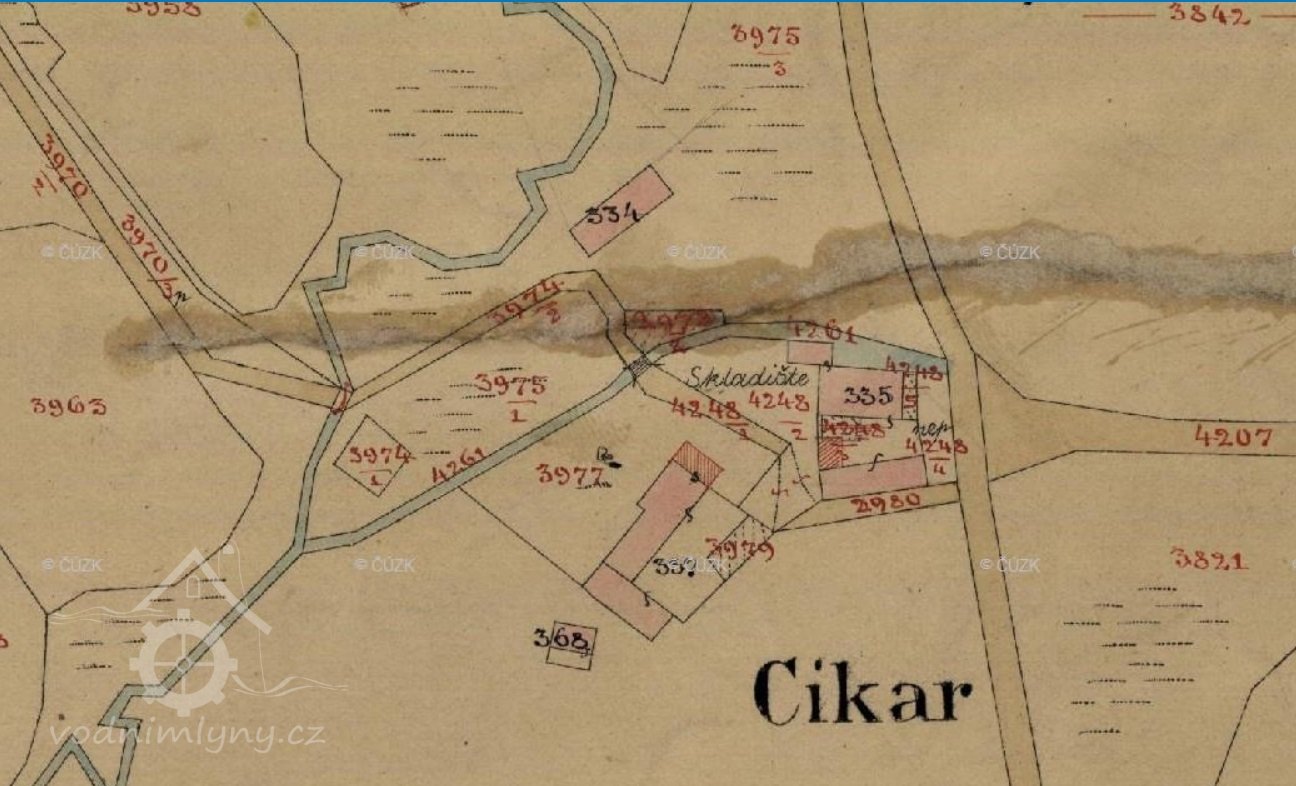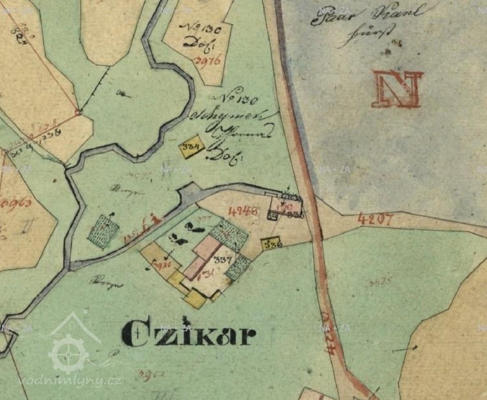 Mlýn byl postaven někdy v 1. polovině 16. století na potoce Řečici pod rybníkem Popelovem. Po dlouhou dobu jej pak drželi mlynáři Cvikarové, jejichž jméno přešlo na mlýn i na ostatní budovy později vystavěné v jeho okolí. Zkrácená výslovnost jména Cvikar v podobě "Cikar" se objevuje od r.1722 i v písemné dohodě. Rodina Cvikarů, z níž byl jako první doložen na tomto mlýně koncem 16.století Vít, hospodařila na tomto mlýně až do r.1690, kdy poslední z nich Václav Cvikar prodal mlýn Václavu Šabatkovi. V té době měl mlýn 2 kola, 5 stoup a pilu na nestálé vodě. V roce 1698 koupil mlýn od mlynáře Šabatky majitel panství Kardašova Řečice hrabě Karel Götz, který od něj oddělil pozemky, na nichž zřídil nový panský dvůr, pro nějž se rovněž ujal název Cikar. Samotný mlýn bez pozemků byl potom dáván do nájmu různým mlynářům, původně za roční plat 15 zl.rýnských a 64 strychů obilí. V roce 1759 získal mlýn od řečické vrchnosti do emfyteutického držení za 600 zl.rýnských Jan Zeman, v jehož rodině zůstal mlýn do r. 1802. V roce 1811 koupil mlýn Tomáš Šimek, poté držel mlýn od roku 1850 jeho syn Josef a od počátku 80. let 19. století vnuk Augustin Šimek, který jej přebudoval na válcový mlýn a hospodařil na něm ještě začátkem 20. století.