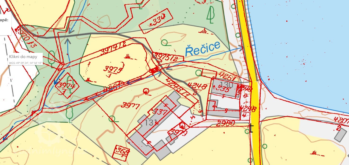 Mlýn pod hrází rybníka, využíván rekreačně, zachován jen náhon.