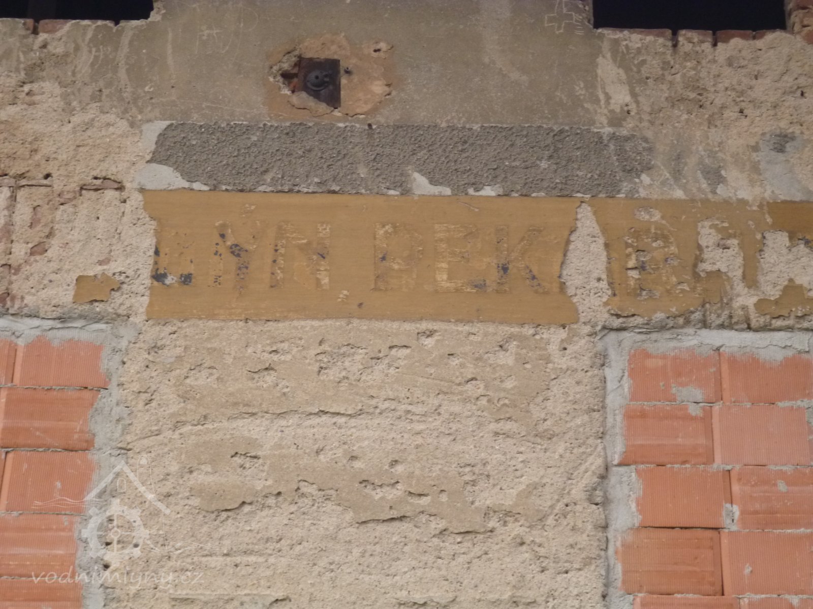 Na boku mlýna je špatně viditelný nápis - MLÝN, PEKAŘ/PEKÁRNA.(HŠ)
