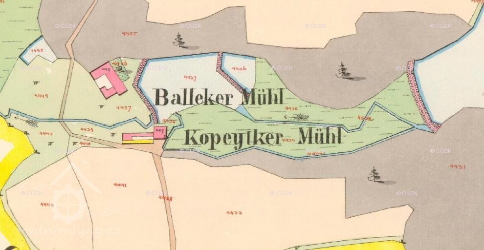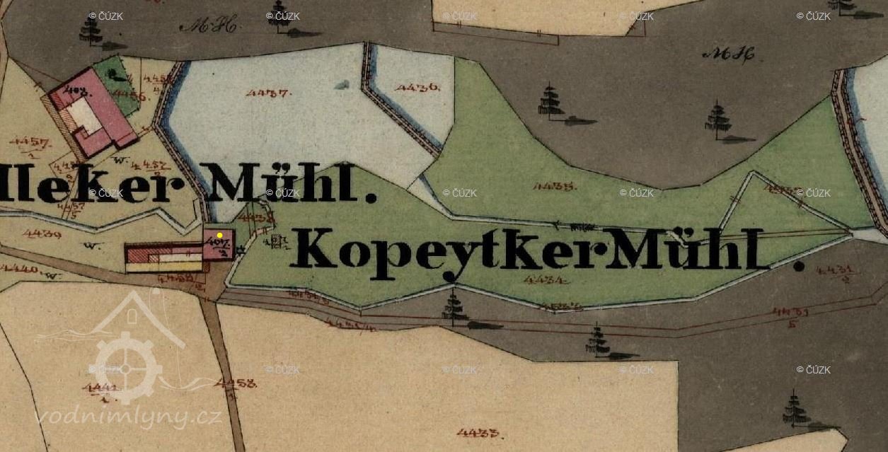 1797 od Martina Balka koupil za 4.200 zl. Albert Vojtěch Kopejtko z Rácova u Batelova. Mlýn měl 2 kola, později pořízeno ještě třetí pro výrobu krup.