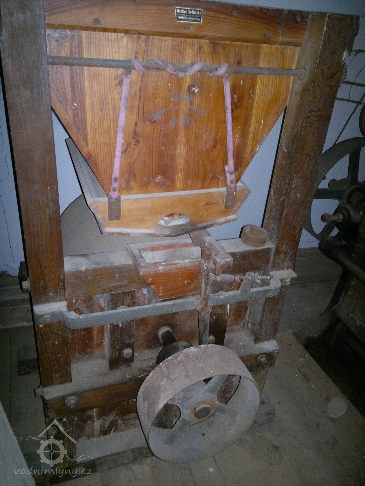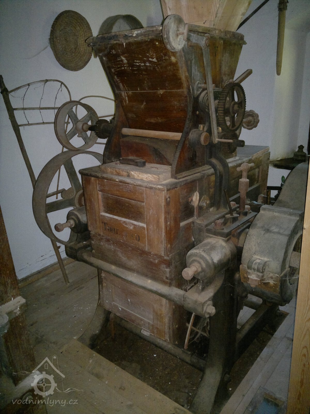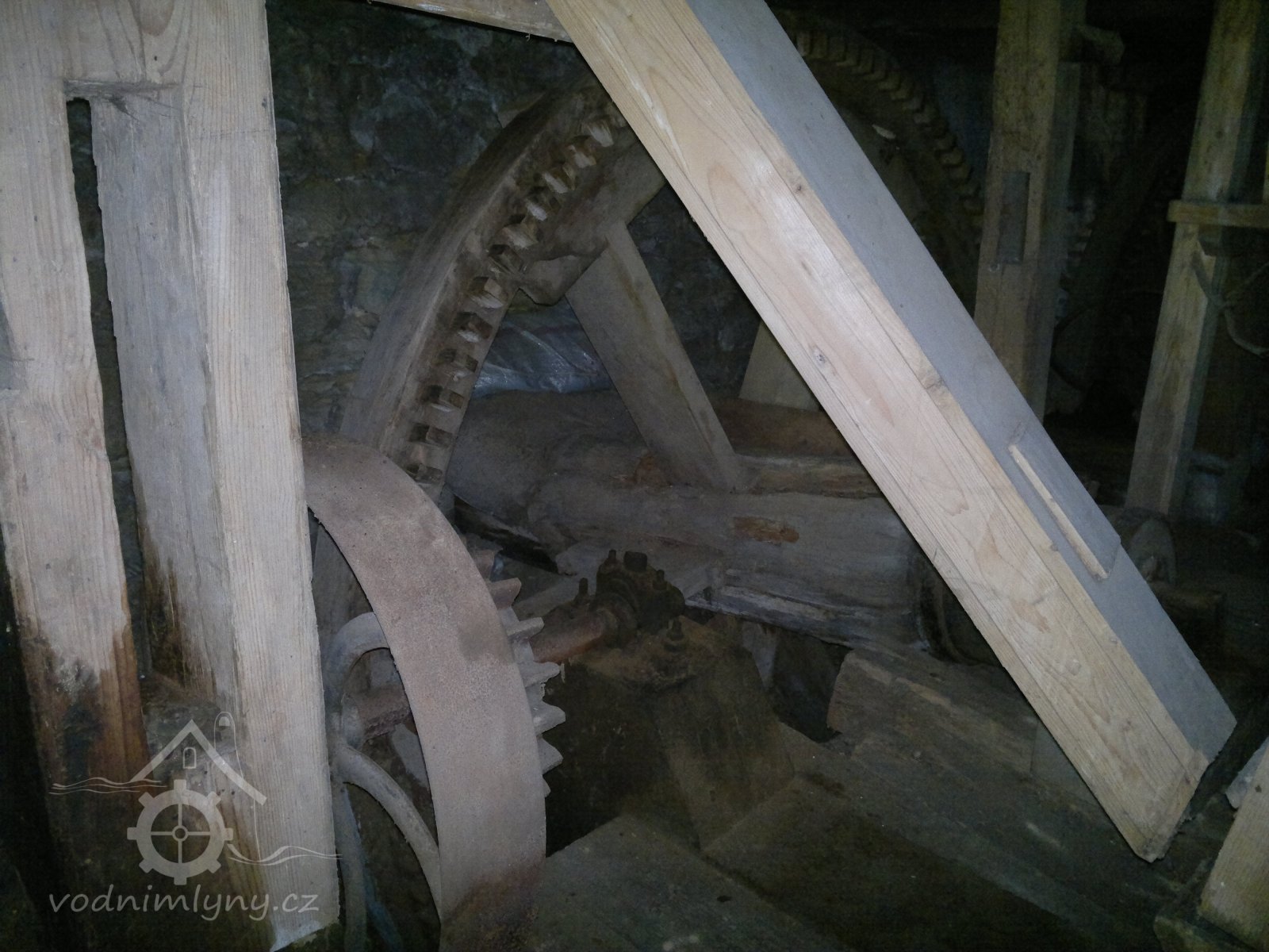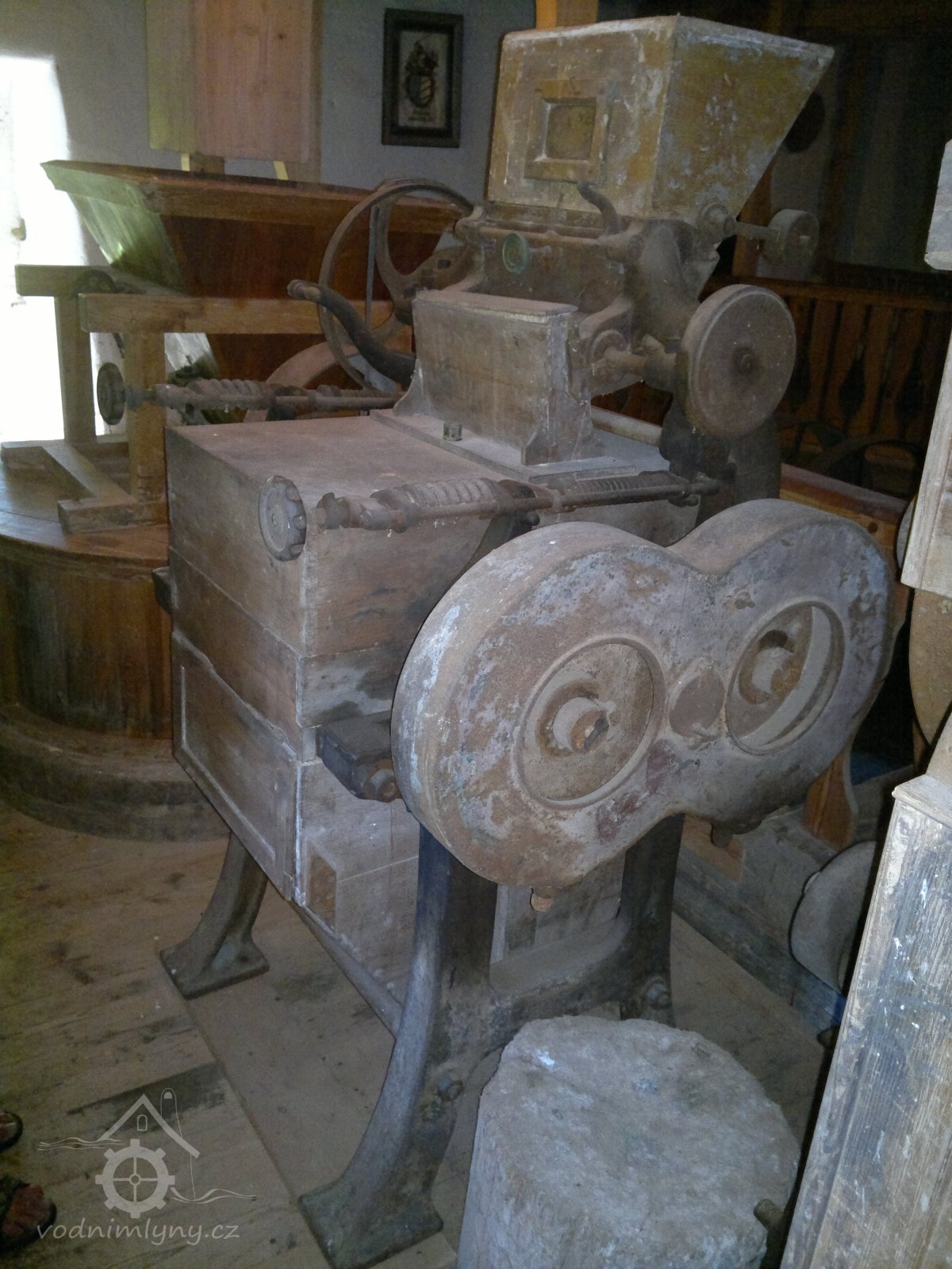 Původně zde byla 3 celodřevěná vodní kola na vrchní vodu. Dvě poháněla složení mlýna, třetí stoupu. Později byla stoupa odstraněna a dochoval se jen její fragment (sloupy, kamenný štok). Dřevěné hřídele vodních kol procházejí do podkolí, na nichž jsou dvě paleční kola. Původně roztáčela tzv. obyčejná kamenná mlecí složení, avšak v průběhu modernizace mlýna došlo na začátku 20. stol. k osazení strojního zařízení (umělecké válcové složení). Jedno paleční kolo roztáčelo přes litinový pastorek a řemenici předlohovou transmisi k pohonu dynama a šrotovníku. Druhé paleční kolo též přes pravoúhlý převod za pomoci litinového pastorku, hřídele a řemenice otáčelo hlavní transmisí umístěnou v ložiskách na trámech 1. podlaží. Od transmise byly přes ploché kožené řemeny hnány jednotlivé mlýnské stroje. Zachována původní mlýnská hranice dvojnásobná s dřevěnými sloupy a kamennou dvojicí sloupů vpravo. Datace na kamenném sloupu r. 1796. V podkolí se kromě zmíněného převodového soukolí, mlýnské hranice a stoupy nachází též pytlovací lávka od reformy, elektrorozvodná deska a paty kapsových dopravníků. Stojí zde také vzácně dochovaná moučná truhla, jenž je pravděpodobně pozůstatkem obyčejného složení. Na prvním podlaží nalezneme vzácnou archaickou válcovou mlecí stolici od fa J. Hűbner a K. Opitz - Pardubice z roku 1890 s rýhovanými válci a dřevěnou skříní. Mezi vzácně dochované se řadí i loupačka z počátku 20. stol. od fa J. Prokop – Pardubice, reforma starého sytému na čištění a třídění krupic taktéž z počátku 20. stol., válcová stolice s porcelánovými válci na luštění krupic a dřevěnou skříní od fa Friedrich Wegmann – Zűrich z konce 19. stol., kamenné mlecí složení (stolice Wegmann a kamenné mlecí složení zachráněny před likvidací a převezeny z nedalekého Bělkovského mlýna) a nakonec šrotovník od fa Jindřich Světnička – strojírna na stavby mlýnů Strměchy u Pelhřimova z 20. let 20. stol. K reformě je filtr typu autokap. Všemi podlažími prochází několik kapsových dopravníků. Na druhém podlaží a v podstřeší je umístěn hranolový vysévač moučný s pytlovací lávkou, hranolový předvysévač, čistící stroj, trieur (koukolník), hlavy kapsových dopravníků a horní transmise. Strojní vybavení odpovídá malému vesnickému mlýnu s jednou válcovou stolicí. Zařízení je dochováno ve velmi pěkném stavu nikterak narušené novodobými úpravami. Mlýn se řadí mezi nejvzácněji dochované komplety na území ČR.