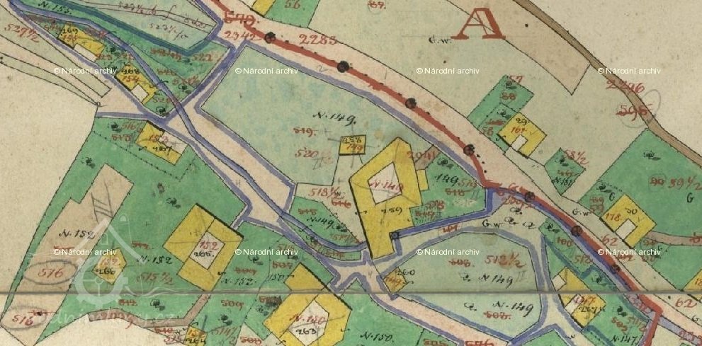 První čp. mlýna bylo 149, po přečíslování v roce 1890 má mlýn čp. 199.