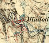 Dalším prokazatelným důkazem o existenci mladotického mlýna je I. vojenské mapování z let 1764-1768 a jeho rektifikace z let 1780-1783 (viz http://oldmaps.geolab.cz/map_viewer.pl?lang=cs&map_root=1vm&map_region=ce&map_list=c147), z něhož je vidět též z Doubravy vybudovaný Mlýnský náhon. Tehdy mlýn patřil Václavu Stoupovi (Staupovi), jenž zemřel 23. ledna 1800. Opětovně je zaznamenán ve II. vojenském mapování z let 1836-1852 (viz http://oldmaps.geolab.cz/map_viewer.pl?lang=cs&map_root=2vm&map_region=ce&map_list=O_10_VII) a v indikační skice stabilního katastru z roku 1838 (viz https://ags.cuzk.cz/archiv/openmap.html?typ=skicic&idrastru=CAS367018380), kdy náležel Adalbertu Staupovi (Vojtěchu Stoupovi). Z tohoto kartografického díla vidíme, že tehdy ještě existoval původní dřevěný mlýn, k němuž někdy na přelomu 18. a 19. století přibyl další zděný, i když některé prameny hovoří o tom, že roubený objekt nebyl mlýnem, nýbrž pilou, takže si můžeme vybrat, jak tomu bylo doopravdy.