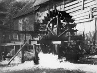 Podle historické fotografické dokumentace se zdejší přenos energie od vodního kola děl pomocí hřídele vystupující do dvorního průčelí a osazené dřevěnou řemenicí. Plochý řemen přenášel energii na kovovu hřídel vynášenou sloupovými tesařskými konstrukcemi až do prostoru před stodolou. (RUr)