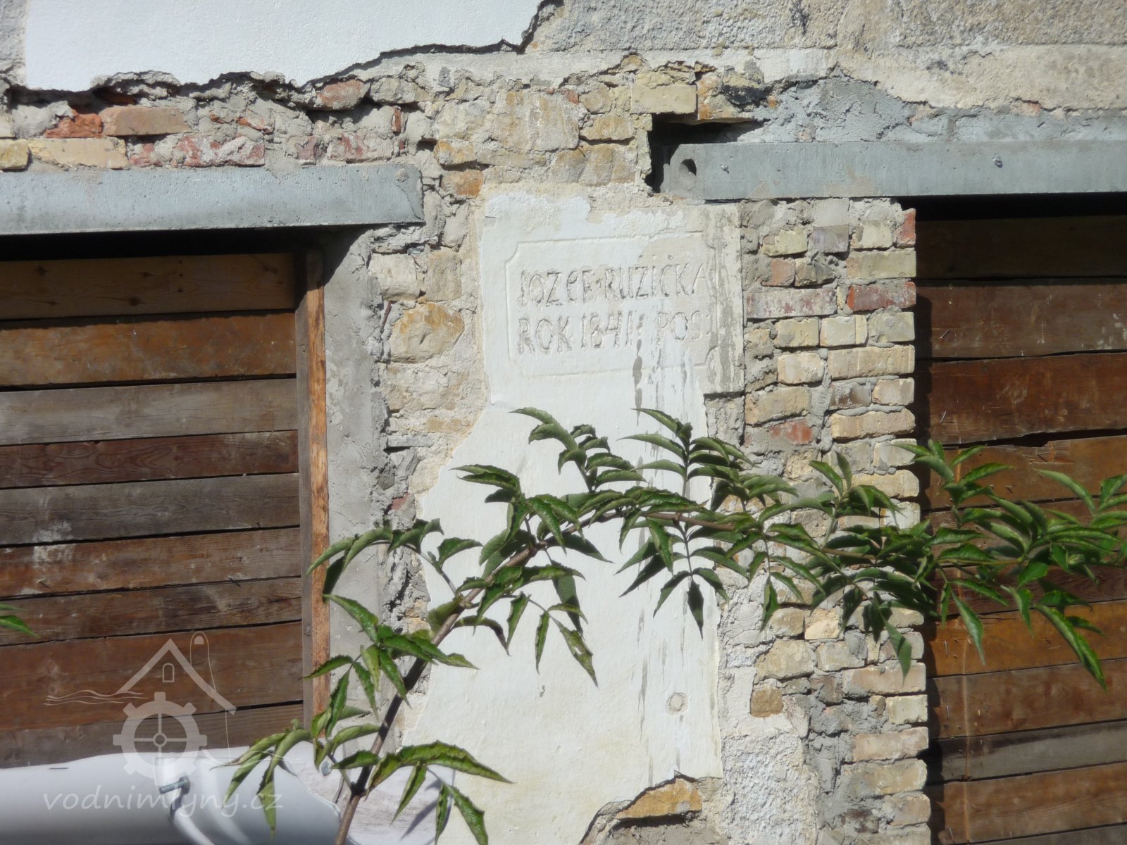 V roce 1841 postavil budovy mlýna a pily Jozef Růžička (viz zápis na omítce)