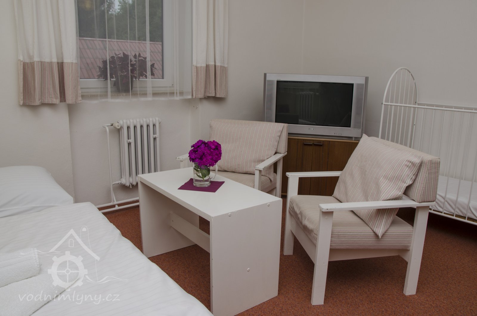 K dispozici je 55 lůžek ve dvou, třech a čtyřlůžkových pokojích.