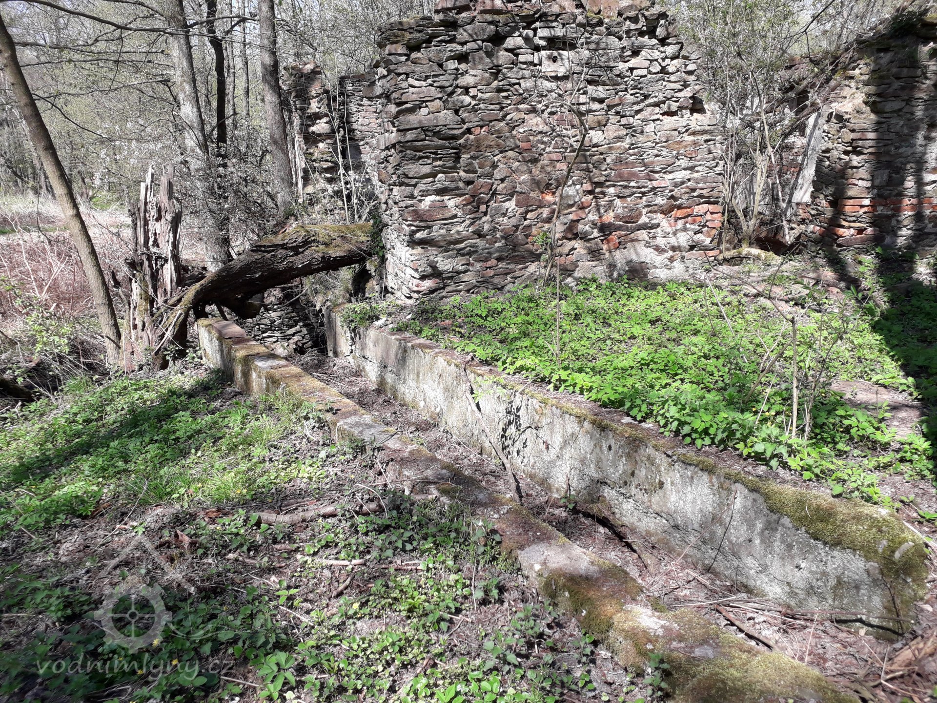 PopisV r. 1930 zde byla 2 kola na svrchní vodu, průtok 0,21 m3/s, spád 4,26 m, výkon 7,6 k. (RR)