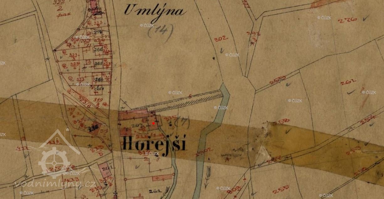 Popis19302: 1 kolo na svrchní vodu, hltnost 0,183 m3/s, spád 5,05 m, výkon 8 HP
