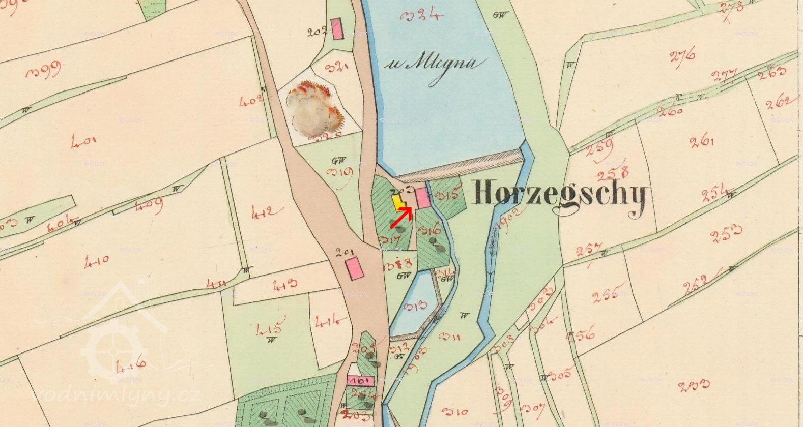 Mlýn se nacházel v severní části obce