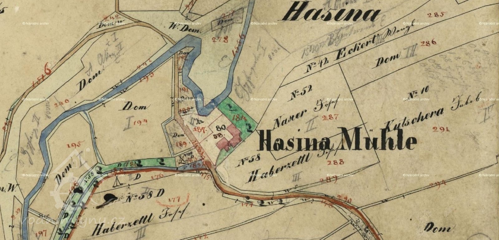 Chátrající mlýn v údolí řeky Hasiny. Vlastník TOSTARDEN a.s., Biskupský dvůr 2095/8, Nové Město, 11000 Praha 1. Fotky doplním časem.