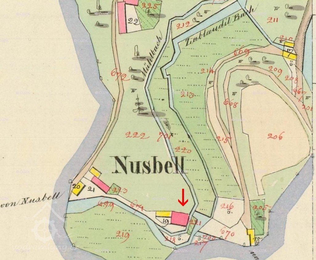 PopisV r. 1930 zde byla Francisova turbína, průtok 0,32 m3/s, spád 4,25 m, výkon 10,75 k. (RR)