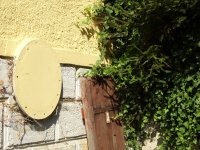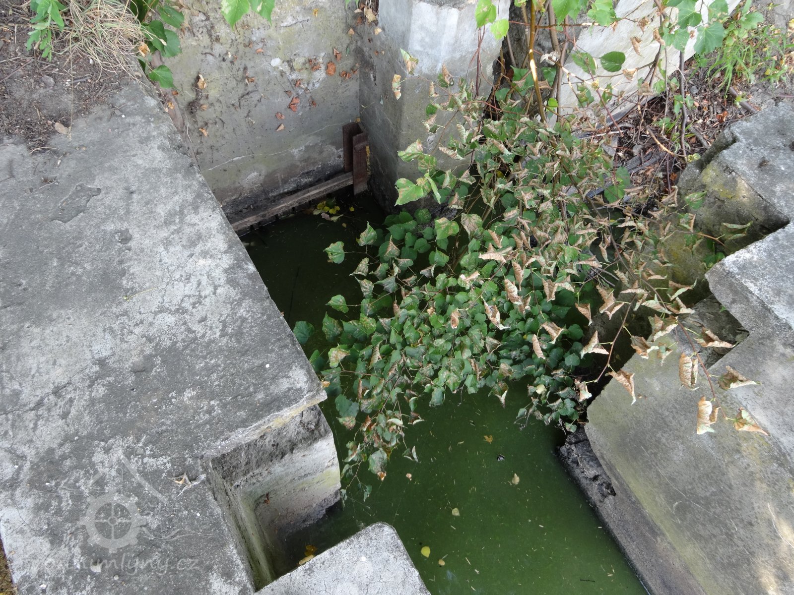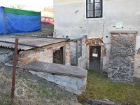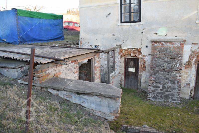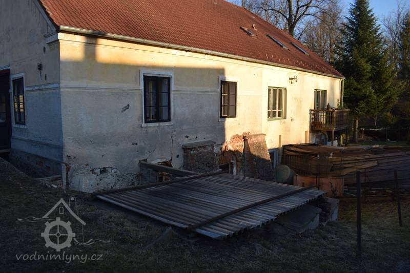 Ve stěně budovy je vidět zaslepenou rouru pro přívod vody k turbíně.