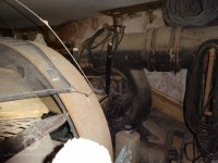 V přízemí je Francisova turbína s horizontálním hřídelem a generátor v původním postavení a na stěně transmise, která poháněla čerpadla